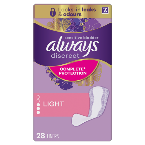 For those times when you need extra protection, there are Always Discreet Incontinence Light Liners for sensitive bladder. These liners are ultra thin and have a flexible core for great comfort. They’re designed to lock away wetness and neutralise odours for added freshness. Try Always Discreet Liners for sensitive bladder for when you experience unintentional frequent urination.