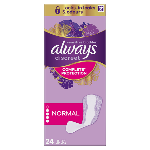 For those times when you need extra protection, there are Always Discreet Incontinence Normal Liners for sensitive bladder. These liners are ultra thin and have a flexible core for great comfort. They’re designed to lock away wetness and neutralise odours for added freshness. Try Always Discreet Liners for sensitive bladder for when you experience unintentional frequent urination.