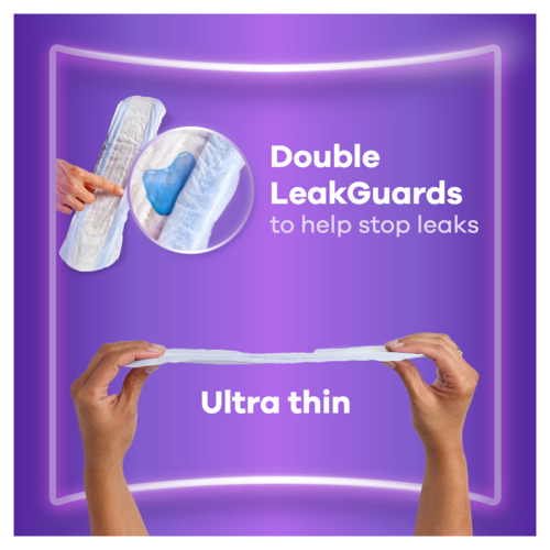 - An ultra-thin RapidDry core absorbs bladder leaks in seconds